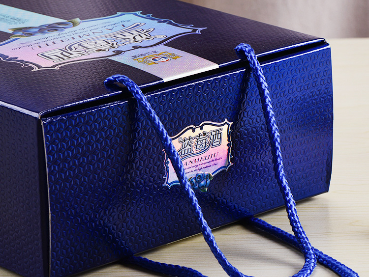 产品名称:酒包装盒 材质: 素面镭射金银卡纸 纸张克重/厚度:可选 表面处理:耐刮油 带保护膜 纳米逆向油 印刷颜色:uv胶印加印白墨 成品外尺寸:可定制 其它工艺: 烫金 击凸 局部UV 喷码
